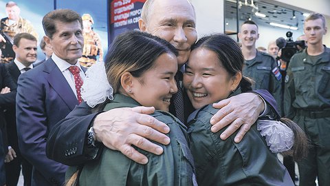 Ребята не упустили возможности и попросили президента ввести дополнительные баллы при поступлении во все военные вузы за обучение в военно-патриотических центрах. "Идея хорошая. Подумаем", - ответил он.