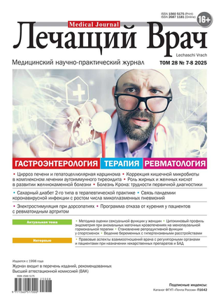 Научно-практический медицинский журнал, рекомендован Высшей Аттестационной Комиссией (ВАК).